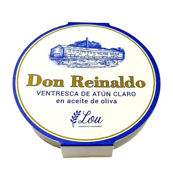 - Una lata de ventresca de atún claro en aceite de oliva. Artesanal. Don Reinaldo.
