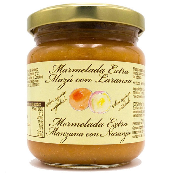 - Un tarro de mermelada de manzana con naranja sin azúcar. Sin conservantes. Producto natural. Amieiro.